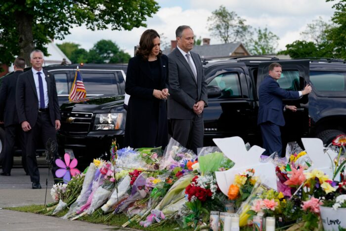 Harris nahm gemeinsam mit ihrem Ehemann Doug Emhoff an der Trauerfeier für eines der Todesopfer teil und besuchte auch den Tatort. Mitte Mai hatte ein Schütze mit einem Sturmgewehr vor und in einem Supermarkt das Feuer eröffnet, zehn Menschen erschossen und drei weitere verletzt. Er wurde noch am Tatort festgenommen. Den Ermittlern zufolge war die Tat rassistisch motiviert – 11 der 13 Opfer waren schwarz. Buffalo hat eine mehrheitlich schwarze Bevölkerung.