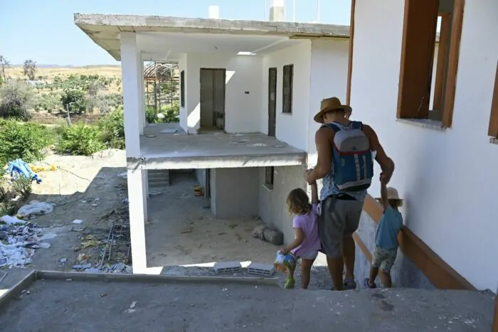 Die Zwillinge Tao und Doa laufen mit nackten Füßen über staubige Erde, vorbei an dem zum vorübergehenden Zuhause ausgebauten Camping-Van und zwei Rohbauten – ihrem zukünftigen Zuhause. Bis vor einem Jahr stand auf dem Grundstück im südtürkischen Ort Kalemler noch alles in sattem Grün.