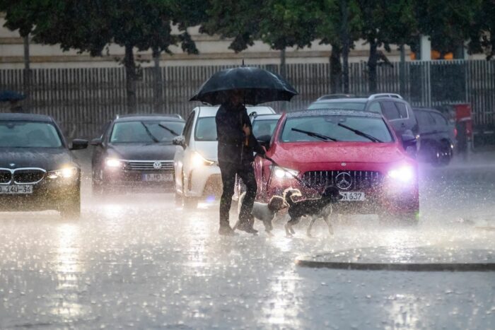 Nach dem gewittrigen Start ins Wochenende brachte der Samstag vor allem im Osten und Süden Deutschlands erneut Regen und Gewitter. Während sich im Westen und Nordwesten bereits ein Keil mit trockenerer und kühlerer Luft bemerkbar mache, halte sich im Rest des Landes feucht-warme Luft, hieß es am Nachmittag vom Deutschen Wetterdienst (DWD). Die Wahrscheinlichkeit für extreme Regenmengen liege aber niedriger als am Vortag.