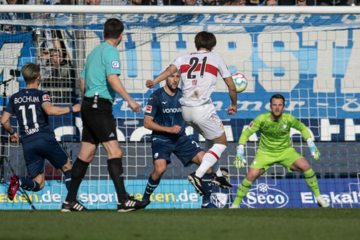 Stuttgart begann erstmals seit Anfang Februar wieder mit seinem lange verletzten Top-Torjäger Guirassy. Für die frühe Führung sorgte aber ein Abwehrspieler – mit unfreiwilliger Hilfe eines Bochumers. VfL-Verteidiger Danilo Soares legte den Ball nach einer Flanke von Borna Sosa unfreiwillig vor und der aufgerückte Ito ließ die mitgereisten VfB-Fans mit einem wuchtigen Schuss in den Winkel jubeln.