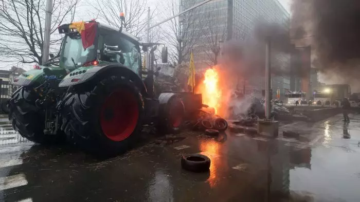Brennende Reifen bei Bauernprotest in Brüssel