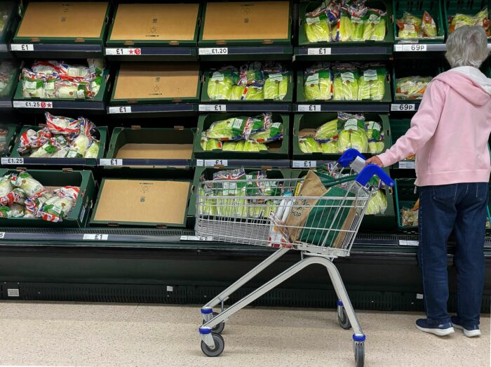 Die BBC berichtete am Dienstag bereits von teilweise ungewöhnlich leeren Gemüseregalen in Supermärkten, demnach sollen insbesondere Tomaten knapp sein. Diese werden im Winter in Großbritannien gewöhnlich importiert, oft aus Spanien oder Marokko. Dort waren die Ernten zuletzt durch eine Kälteperiode, die auf ungewöhnlich warmes Wetter folgte, beeinträchtigt. Die Supermarktkette Asda begrenzte dem Bericht zufolge sogar den Verkauf von Tomaten, Paprika, Gurken und anderem Gemüse.