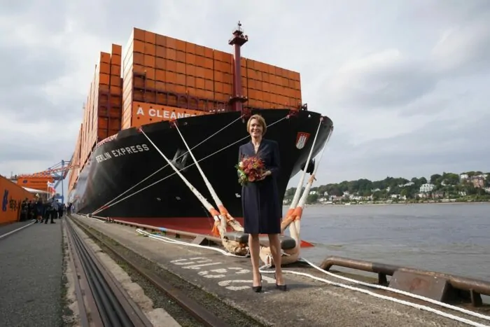 Am Montag wurde das 400 Meter lange und 61 Meter breite Schiff in seinem Heimathafen Hamburg offiziell in die Flotte von Hapag-Lloyd aufgenommen. Patin der feierlichen Taufzeremonie war Deutschlands First Lady Elke Büdenbender, die Ehefrau des Bundespräsidenten Frank-Walter Steinmeier.