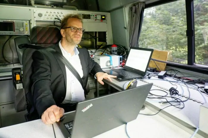 Der Messingenieur Markus Busch ist vier Tage lang mit einem Kollegen in einem Transporter unterwegs, um die Qualität des Netzes zu analysieren. Es geht nicht nur über Straßen, sondern auch über Feld- und Waldwege. «Überall da, wo wir fahren können, fahren wir.» Auf dem Dach des Wagens sind mehrere Antennen. Der Innenraum ist voll mit Technik, ob Scanner, Laptops oder spezielle Messinstrumente.