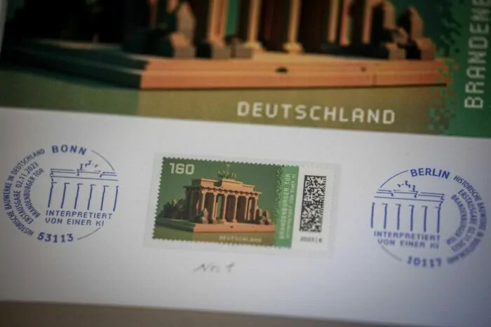 Deutschlands erste Krypto-Briefmarke zeigt das Brandenburger Tor im Pixel-Stil. Das Motiv wurde von Künstlicher Intelligenz generiert und ist der Auftakt einer neuen Serie.