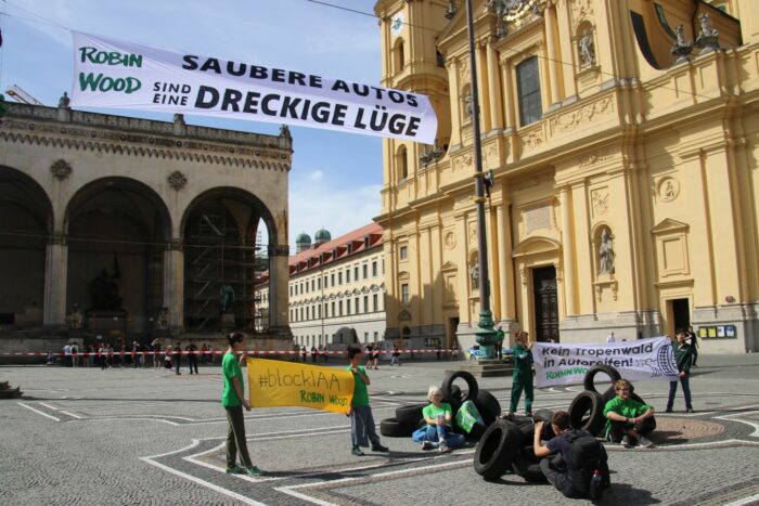 Auch Greenpeace ist aktiv. Jugendliche wollen am Stachus aufs Pflaster ein riesiges Straßenbild mit Kreidefarben malen. Außerdem findet eine Podiumsdiskussion von Klimaschutz-Organisationen mit dem Verband der Automobilindustrie statt. Am morgigen Sonntag beteiligt sich Greenpeace mit Gruppen wie Attac, Bund Naturschutz oder der Deutschen Umwelthilfe an einem Aktionsbild. Hunderte Menschen wollen in der Maximilianstraße einen Schriftzug bilden. Die Verkehrspolitik müsse sich konsequent auf die Bahn konzentrieren und nicht auf große, klimaschädliche Autos, wie sie die auf der IAA ausstellenden Konzerne immer noch überwiegend verkauften, so ihre Forderung.