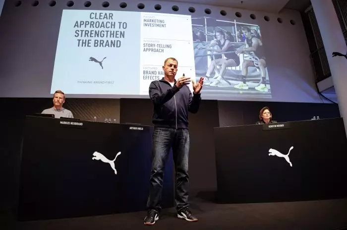 Hoeld will Puma zu alter Stärke führen, mit Fokus auf Fußball, Laufen, Fitness und Lifestyle, sowie Reduzierung von 1400 Stellen.