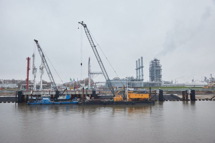 Der Anleger für das schwimmende Terminal wurde im Dezember letzten Jahres nach fast elf Monaten Bauzeit an die Nutzer Deutsche Energy Terminal und Hanseatic Energy Hub übergeben. Laut Landkreis handelt es sich bei dem Anleger in Stade um das größte wasserseitige Bauprojekt in deutschen Häfen. Es wurden 300 Millionen Euro in die Anlage investiert.