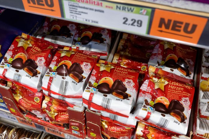 Die Produktion von Printen, Lebkuchen und Stollen begann im Juni bei der Lambertz-Gruppe. Täglich verlassen bis zu 10.000 Paletten die Produktionslager. Insgesamt werden etwa 700 Millionen Dominosteine und 720 Millionen Lebkuchen hergestellt. „Viele Verbraucher wünschen sich, dass die Gebäcke das ganze Jahr über angeboten werden“, sagt Lambertz-Sprecher Martin Heinen. In einigen Nachbarländern ist dies bereits der Fall. Das Wetter spielt auch beim Verkauf eine wichtige Rolle, so das Unternehmen. Ein warmes Wetter im Oktober und November wäre dem Absatz nicht zuträglich.