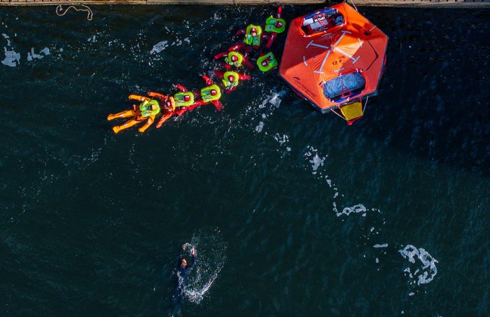 Astronauten auf See – Überlebensübung mit Weste und Paddel