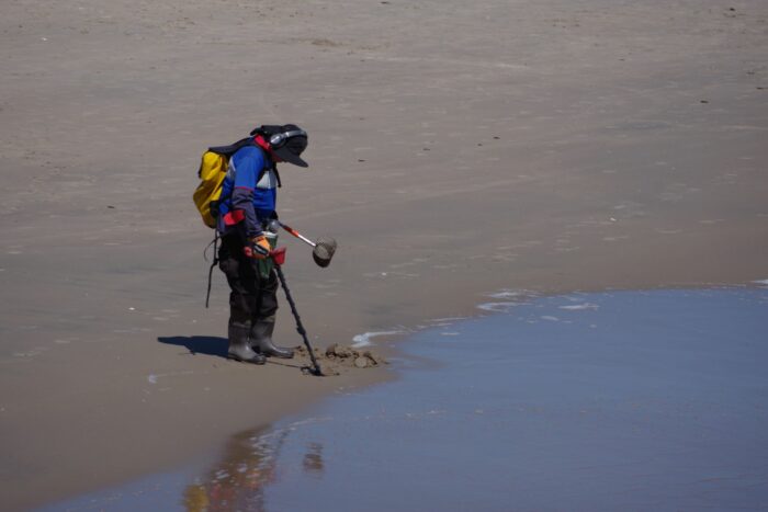 «Für mich ist das eine Herausforderung, ein Spiel», erklärt George, während er den dritten Kronkorken des Tages aus dem Sand fischt. Die richtig guten Funde – Schmuckstücke und seltene Münzen – mache er sowieso im Winter, wenn Stürme häufig frischen Sand ans Atlantikufer tragen. Im April ist er fast der einzige Schatzsucher hier. Bei nass-kaltem Winterwetter einer von Dutzenden.