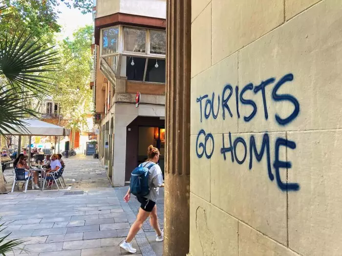 Mehrere Menschen stehen versammelt an der Strandpromenade und beschimpfen vorbei spazierende Touristen. «Geh zurück nach Hause», schreien einige. Andere drohen sogar mit Schlägen. Man sieht auf dem von Medien geposteten Video Plakate mit Aufschriften wie «Tourists go Home» oder «Esta es nuestra tierra» (Das ist unser Land). Ähnliche Aktionen, touristenfeindliche Graffiti und Proteste verärgerter Bürger gibt es in Spanien immer häufiger.
