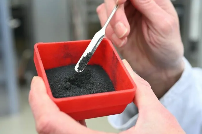 Es ist der Hightech-Rohstoff Carbon Black, den Forschende des Karlsruher Instituts für Technologie (KIT) wortwörtlich aus Luft hergestellt haben. Mit einer Apparatur saugen sie klimaschädliches CO2 aus der Umgebungsluft und stellen daraus Kohlenstoff her. Carbon Black ist dabei nicht alles, wie Benjamin Dietrich vom KIT-Institut für Thermische Verfahrenstechnik sagt. Je nach Temperatur und Druck könnten auch Graphit und Graphen hergestellt werden – in der Industrie begehrte Materialien.