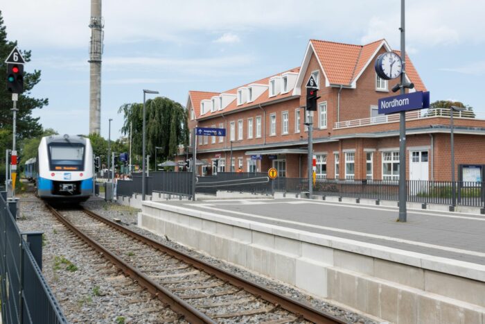 Der ebenfalls ausgezeichnete Bahnhof in Nordhorn liegt an einer 2019 für den Personenverkehr reaktivierten Schienenstrecke. «Der Bahnhof Nordhorn bietet vieles, was ein Großstadtbahnhof zu bieten hat, nur auf engerem Raum. Das Herzblut, das in die Gestaltung des Bahnhofs geflossen ist, ist für die Reisenden überall spürbar», sagte Flege. Der Innenbereich des Bahnhofscafés sei beispielsweise einem alten Zugabteil nachempfunden, zudem sei auch die Anschlussmobilität «ausgezeichnet» mitbedacht worden. Als einzigen Kritikpunkt nannte die Jury auch hier eine nicht ausreichende Zahl an Fahrradstellplätzen.