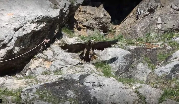 Die beiden Bartgeier Dagmar und Recka sind noch kein Jahr alt. Nach ihrer Auswilderung im Nationalpark Berchtesgaden im vergangenen Sommer kommen sie in den winterlichen Bergen gut zurecht.