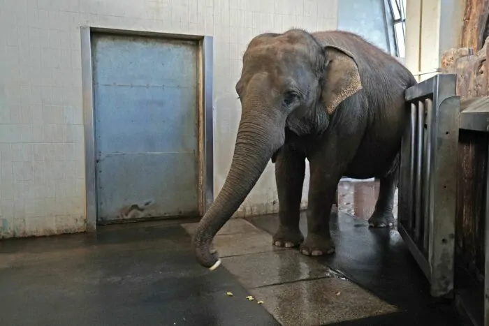Berliner Elefantenkuh kann Banane mit dem Rüssel schälen
