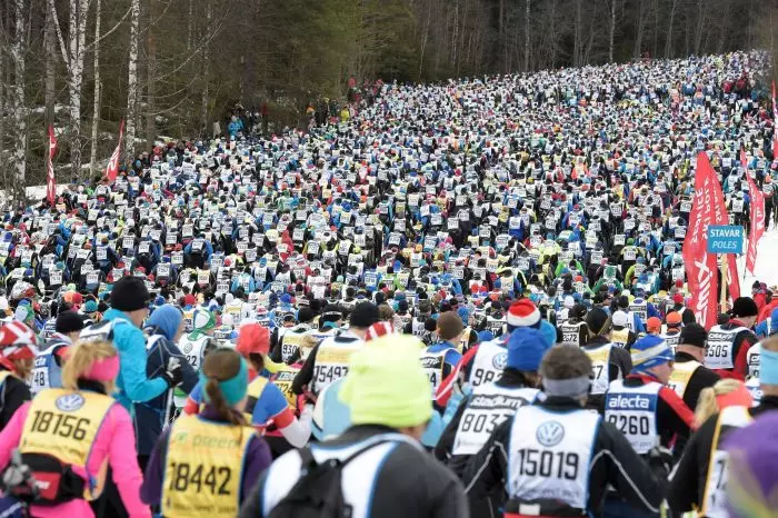 Das Geräusch ist einzigartig: Wenn 16.000 Skilangläufer gleichzeitig in Bewegung kommen, wenn 16.000 Paar Skistöcke in den Schnee stoßen und 16.000 Paar Skier gleiten. Dieses Rauschen nach dem Startschuss beim Wasalauf in Schweden erzeugt eine besondere Energie, die die Teilnehmer benötigen: Sie haben 90 Kilometer vor sich und maximal zwölf Stunden Zeit. Die Schnellsten erreichen – je nach Wetter – das Ziel nach 3,5 bis 4,5 Stunden. Der Vasaloppet, wie die Schweden sagen, ist das größte Langlaufrennen der Welt. Am Sonntag (3. März) findet es zum 100. Mal statt.