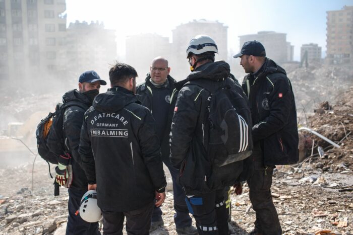 Zehntausende wurden seit dem verheerenden Erdbeben am 6. Februar in der Südtürkei bereits beerdigt. Tausende Tote werden noch unter den Trümmern vermutet. Die Bestatter um Stawinski haben ein erstes Team von Deathcare abgelöst. Um Tote zu bergen, sind die Helfer auf Hinweise von Verwandten oder Behörden angewiesen. Eine möglichst schnelle Bergung ist auch aus hygienischen Gründen erforderlich. Die Zersetzung der Leichen habe trotz der Kälte bereits begonnen, sagt Stawinski. Es sei ratsam, sie schnell zu begraben, auch weil die Gefahr von Seuchen bestehe.