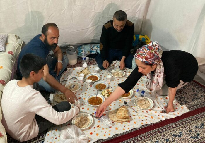 In der vom Erdbeben stark zerstörten Stadt Adiyaman beginnt das erste Fastenbrechen des Ramadans. Familie Kaplan kommt am Donnerstagabend auf dem Boden ihres Zeltes zusammen, in der Ferne ist der Ruf zum Gebet zu hören. Still reicht Vater Ekrem das Brot, während Mutter Asli Wasser für ihre beiden Kinder eingießt. Sie murmeln Gebete für diejenigen, die durch die verheerende Erdbeben am 6. Februar ums Leben gekommen sind.