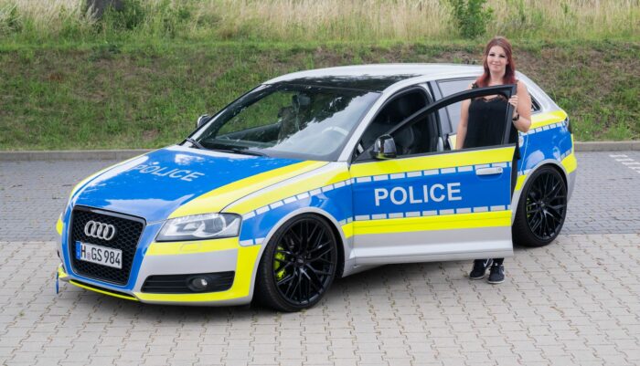 Sage keiner, dass man mit einem Auto heute nicht mehr auffällt. Aber muss es unbedingt ein Ferrari oder Porsche sein? Keine Spur, dafür reicht ein schlichtes Kompaktmodell wie das von Svenja Geertz aus Hannover. Allerdings nicht ganz schlicht: Der Wagen der 25-Jährigen sieht aus wie ein Streifenwagen der Polizei, ist in den Farben Blau, Gelb und Silber foliert. Auf der Motorhaube und an den Seiten prangt der Schriftzug «Police» – nicht «Polizei». Ein wichtiger Unterschied, erklärt Michael Bertram, Sprecher der Polizeidirektion Hannover. Trotzdem: Macht man sich mit so einem Auto bei der Polizei nicht unbeliebt? Oder gar strafbar?