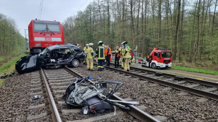 Nach Polizeiangaben waren sie trotz geschlossener Halbschranken auf den Bahnübergang gefahren, wo ein Regionalzug den Wagen «mit voller Geschwindigkeit» erfasste. Durch die Wucht des Aufpralls verkeilte sich das Auto mit dem Regionalzug und wurde mehrere Hundert Meter weit mitgeschleift. Einer der Fahrgäste wurde beim Abbremsen des Zuges leicht verletzt. Der Lokführer blieb unverletzt, wurde aber von einem Notfallseelsorger betreut.