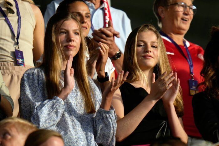Bei der Fußball-EM der Frauen in England absolvierten Thronfolgerin Leonor (16) und Schwester Sofía (15) ihren ersten offiziellen Auslandsauftritt im Auftrag der Krone ohne die Eltern, die daheim in Spanien blieben.
