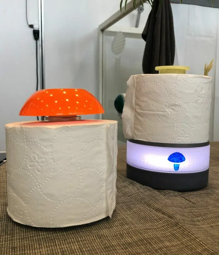 Und dann gibt es noch die Klopapierrolle mit Beleuchtung. Das Gestell Toadylight lässt die Rolle wie einen Pilz aussehen, die bucklige Oberfläche leuchtet im Dunkeln durch Phosphoreszenz in gelb, grün oder orange. Der Genfer Eric Vassaux sagt, viele Leute wollten beim nächtlichen Toilettengang kein Licht einschalten. Sie fänden zwar dem Weg zum stillen Örtchen blind, oft aber nicht das Papier. «Nicht jeder hat eine Klopapierrollenhalterung. Oft steht die Rolle irgendwo auf einem Schränkchen oder dem Fußboden», sagt er. Deshalb das Licht. Das Gestell lässt sich auch mit Saugnapf an der Wand befestigen. Für rund 50 Euro, meint er, könne dies an Mann und Frau gebracht werden.
