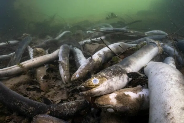 Hunderte verendete Aale seien dieser Tage am Ufer bei Rüdlingen gegenüber der Mündung der Thur zu sehen, «aber das ist nur die Spitze des Eisbergs», sagt Bittner. Viele trieben ungesehen auf dem Grund. Zwischen November und Februar könnten Zehntausende Aale verenden.