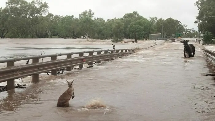 Auch im neuen Jahr kämpft Australien gleich wieder mit Extremwetter. Im Nordwesten haben sich ganze Ortschaften in Seen verwandelt. Nicht nur Menschen, sondern auch Kängurus und Co. sind in Panik.