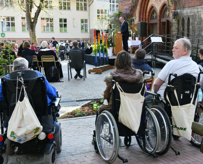 Die vier hilflosen Menschen waren vor einem Jahr von einer Pflegekraft in ihren Betten umgebracht worden. «Wir wollen der ermordeten Menschen gedenken, aber auch die Rückkehr ins Leben feiern», sagte der Theologische Vorstand des Potsdamer Oberlinhauses, Matthias Fichtmüller, am Donnerstag zu Beginn des Gottesdienstes unter freiem Himmel. Dazu waren rund 200 Bewohner, Angehörige, Politiker und Bürger gekommen.