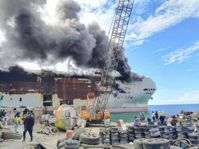 Die «MV Diamond Highway» lag seit dem Taifun «Rai» im Dezember 2021 vor der Küste von Lapu-Lapu City in der zentralen Provinz Cebu. Ausgebrochen sei das Feuer, als Metallreste an Bord geschnitten worden seien. Alle an der Aktion Beteiligten seien in Sicherheit. Während des Taifuns waren mehr als 100 Schiffe auf Grund gelaufen oder gesunken. Mehr als 400 Menschen starben.