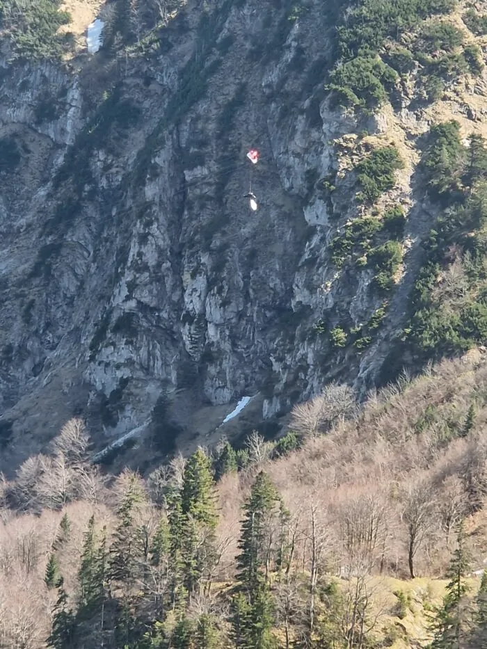 Der Gleitschirm des Mannes aus Oberbayern hatte sich laut Bergwacht um die Tragseile gewickelt und den Mann so vor dem Absturz bewahrt. Eine Rettung per Hubschrauber sei nicht möglich gewesen. Die Einsatzkräfte arbeiteten sich deshalb vorsichtig über das Tragseil der Bahn mit einem Spezialgerät zum Unglücksort vor.