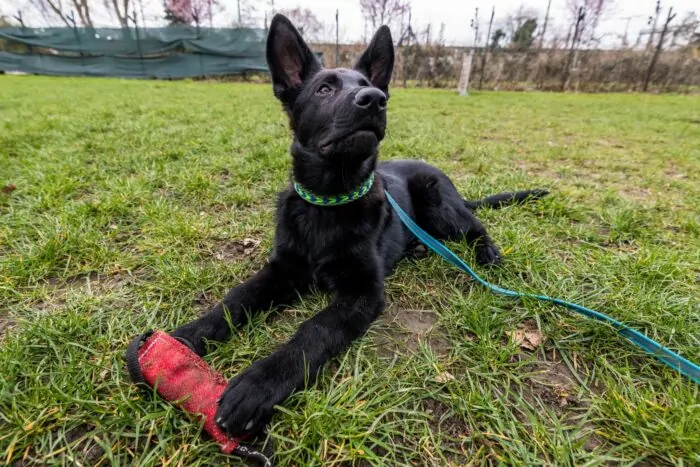 Mit eineinhalb bis zwei Jahren soll der Rüde als Schutzhund bei der Polizei eingesetzt werden. Doch dafür muss er noch viel lernen – angefangen beim Bei-Fuß-Gehen. Später kommt das Witterung aufnehmen, verbellen, zufassen und loslassen hinzu – alles auf Kommando der Hundeführerin.