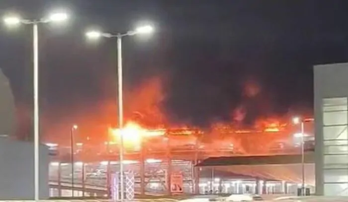 Videos in den Sozialen Medien zeigen, wie hohe Flammen aus einer Parkgarage schlagen. Der Flughafen-Betrieb wurde komplett eingestellt.