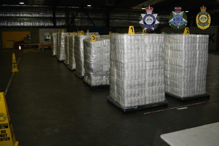 Bei einer Durchleuchtung der Fracht hatten die Beamten Unregelmäßigkeiten festgestellt und anschließend die in zahlreichen Paletten Toilettenpapier versteckten Drogen entdeckt. Ihr geschätzter Wert liegt bei 560 Millionen australischen Dollar (338 Millionen Euro).