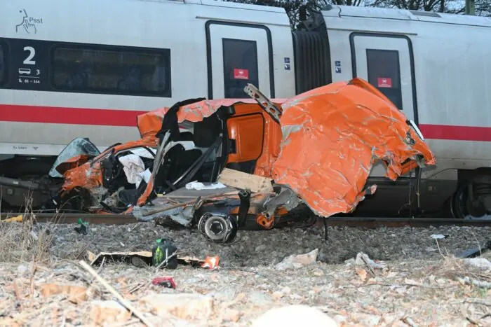 ICE kracht auf Bahnübergang in Baustellenfahrzeug