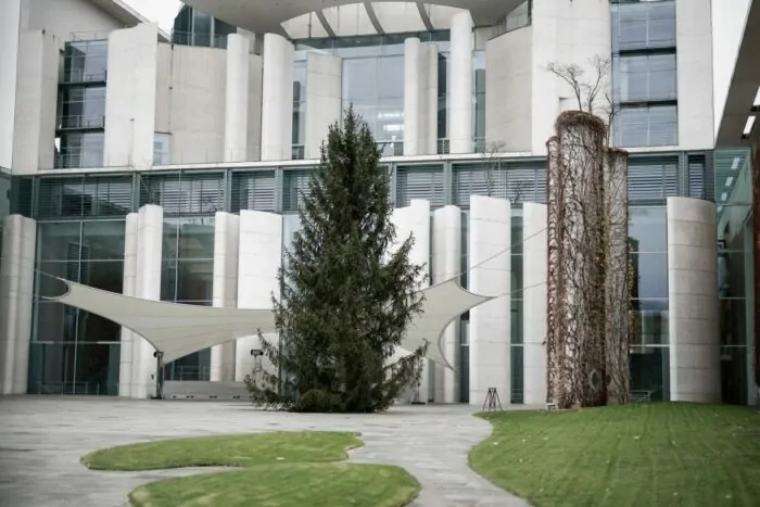Nach Anlaufschwierigkeiten ist am Samstag die sogenannte Kanzler-Tanne vor dem Bundeskanzleramt in Berlin aufgestellt worden. Die 17,5 Meter hohe Fichte aus dem Eberswalder Stadtwald in Brandenburg soll am kommenden Mittwoch offiziell an Bundeskanzler Olaf Scholz (SPD) übergeben werden.