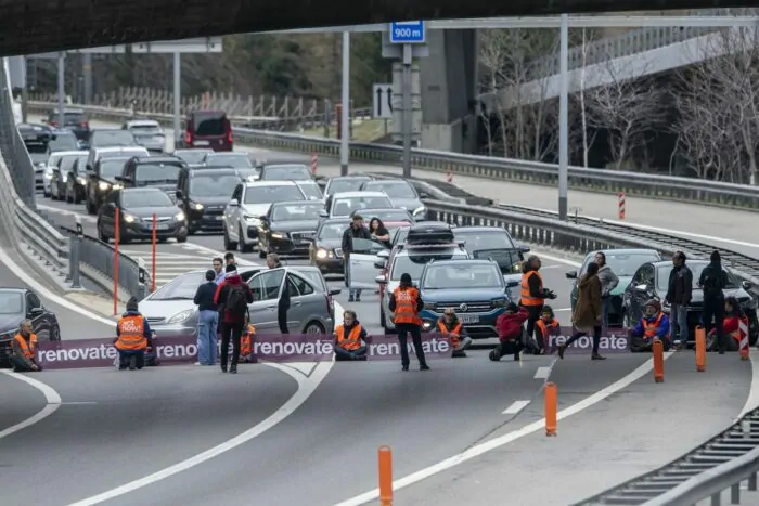 Nach Polizeiangaben kam es zu einem Handgemenge zwischen aufgebrachten Autofahrern und den sechs Menschen, die sich auf die Straße geklebt hatten. Sie gehörten zur Gruppe «Renovate Switzerland» (etwa: die Schweiz sanieren). Sie sollen zu Fuß über eine Autobahnausfahrt auf die Fahrbahn gelangt sein. Die Gruppe ruft zu zivilem Widerstand für das Klima auf.