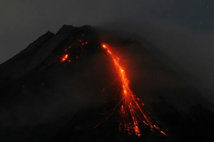 Der mehr als 2900 Meter hohe Merapi ist ein sogenannter Stratovulkan. Bei einem Ausbruch rast oft eine gefährliche Mischung aus Staub, Gestein, Lava und heißem Gas die Hänge hinab. Bei einem schweren Ausbruch 2010 wurden mehr als 340 Menschen getötet, Zehntausende flohen.