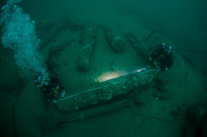 Eingesunkener Rumpf, Kanonen und Gegenstände gefunden