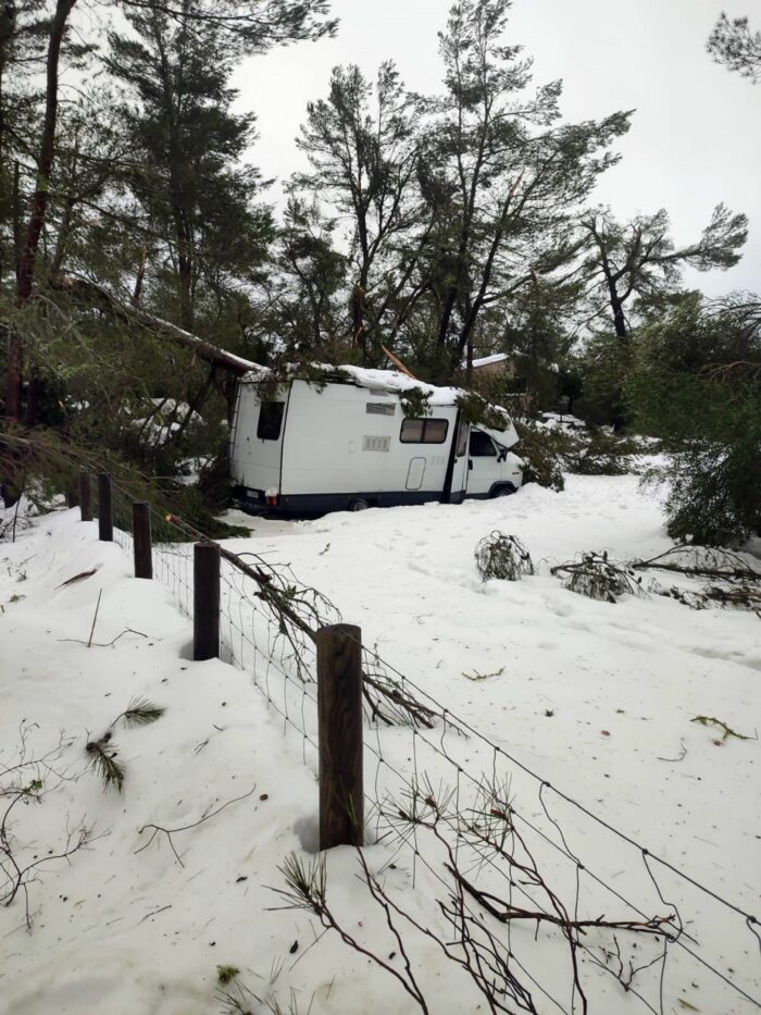 Gefährlicher war die Lage für eine Familie mit zwei kleinen Kindern, die in einem Campingmobil auf einem Pass in den Bergen übernachten wollte. Eine Kiefer stürzte nachts auf ihr Fahrzeug, wie die deutschsprachigen Medien «Mallorca Magazin» und «Mallorca Zeitung» berichteten. Retter konnten nur zu Fuß zu der Familie vorstoßen, die bereits unterkühlt war. Ein anderes Wohnmobil in der Nähe, das eine Heizung besaß, nahm die Familie zunächst auf, bis sie am Folgetag in Sicherheit gebracht werden konnte.