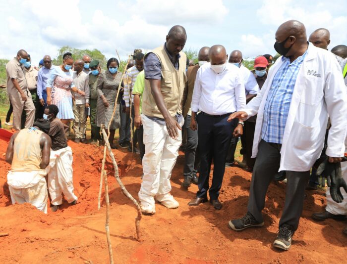 Ein örtlicher Sektenführer hatte mit seinen Anhängern isoliert in dem Waldgebiet Shakahola gelebt und soll die Gläubigen aufgefordert haben, sich zu Tode zu hungern, um so Jesus nahe zu sein. Der Vorfall ist mittlerweile als «Shakahola-Massaker» bekannt. Bereits vor zwei Monaten hatte die Polizei nach ersten Hinweisen schwer unterernährte Menschen in dem Waldgebiet vorgefunden, das anschließend auf Massengräber durchkämmt wurde. Laut dem Innenministerium dauern die Exhumierungen noch immer an.