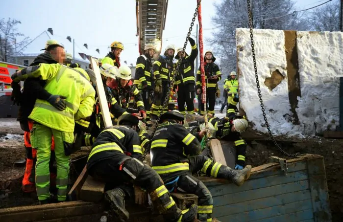 Kollegen des Mannes versuchten sofort, ihn mit den Händen auszugraben und sicherten ihn bis zum Eintreffen der Rettungskräfte ab. Die Feuerwehr unterstützte dann zusätzlich mit einer Drehleiter und Seilen. Nach etwa eineinhalb Stunden wurde der Mann befreit. Der 47-Jährige kam in ein Krankenhaus. Die Polizei ermittelt zur Unfallursache.