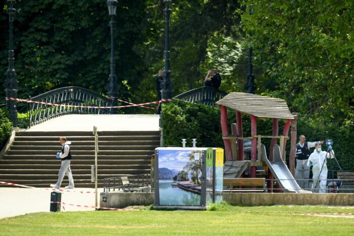 Einen Tag nach dem Messerangriff auf kleine Kinder mitten auf einem Spielplatz in Frankreich ringt das tief getroffene Land um Antworten. Blumensträuße, Kuscheltiere und Luftballons erinnerten in der ostfranzösischen Stadt Annecy an den Vorfall, während in der Nähe Kinder spielten.