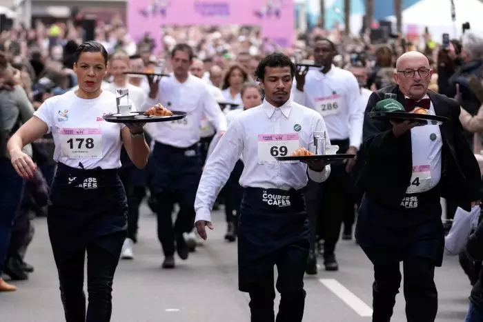 Eine Tasse Kaffee, ein Glas Wasser und ein Croissant auf dem Tablett und damit so schnell wie möglich ans Ziel kommen, ohne etwas zu verschütten und ohne zu rennen: Nach mehr als zehn Jahren fand in Paris erstmals wieder das traditionsreiche «Kellnerlaufen» statt, das geschlechtsneutral in «Café-Laufen», Course des cafés, umbenannt wurde.