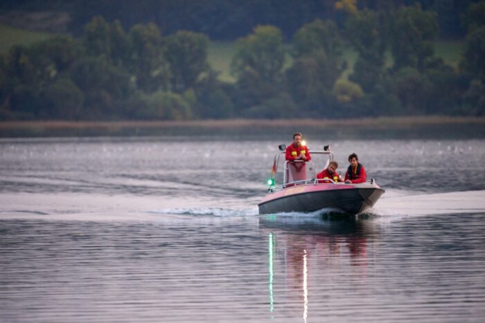 Der Körper des Piloten sei lokalisiert, aber zunächst nicht geborgen worden, sagte die Polizeisprecherin. Das liege unter anderem daran, dass die eingesetzten Taucher Pausenzeiten einhalten müssten.