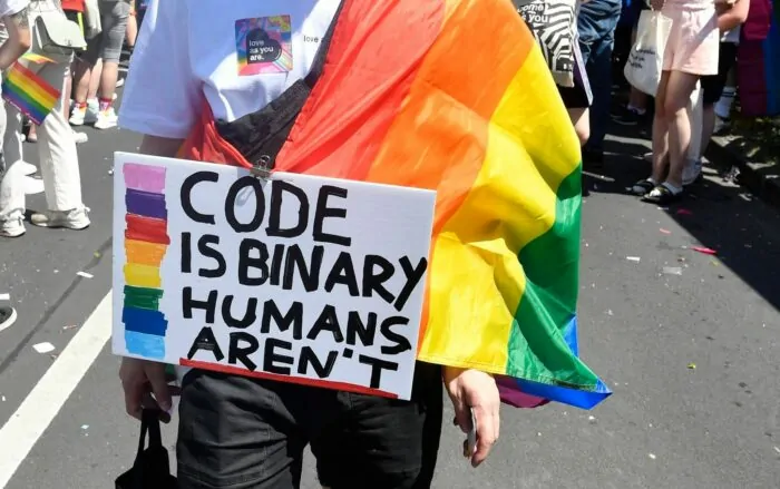 «Die Anforderungen, dem Zwang zu genügen, sich in die binäre Ordnung einzufügen – das wird von vielen Menschen verstärkt als Zumutung erlebt», erklärt die auf der Konferenz vertretene Professorin für Geschlechtersoziologie, Tomke König, die Anfänge der Bewegung. Je vielfältiger die geschlechtlichen Lebensweisen würden, umso lauter werde auch die Kritik an der alten binär-hierarchischen Ordnung. «Boykott dem binären Komplott!» – so drückt es die Band Drangsal in einem Songtext aus.