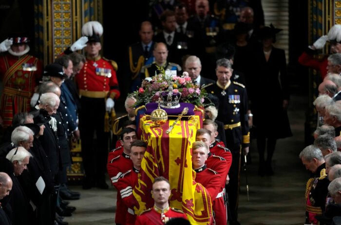 Queen Elizabeth II. war am 8. September 2022 auf Schloss Balmoral in Schottland gestorben. Während der tagelangen Staatstrauer wurde ihr geschlossener Sarg zuerst nach Edinburgh gebracht und dort in der St-Giles-Kathedrale aufgebahrt. Anschließend konnten Trauernde der Queen in der Westminster Hall des Parlaments in London die letzte Ehre erweisen. Das Staatsbegräbnis fand dann in der Westminster Abbey statt.