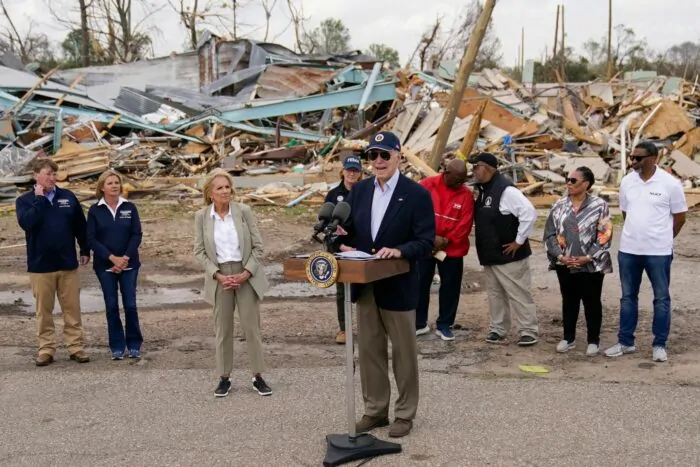 Am Freitag hatten Biden und seine Frau Jill den kleinen Ort Rolling Fork in Mississippi besucht, der besonders hart von dem Sturm getroffen worden war. Die Bidens machten sich dort ein Bild von der Zerstörung in der 2000-Einwohner-Gemeinde und trafen unter anderem den Bürgermeister der Stadt und betroffene Anwohner. «Sie sind nicht alleine», sagte Biden inmitten von Trümmern zerstörter Häuser und entwurzelter Bäume. «Das amerikanische Volk wird Ihnen beistehen. Es wird Ihnen helfen, hier durchzukommen – und ich auch.»