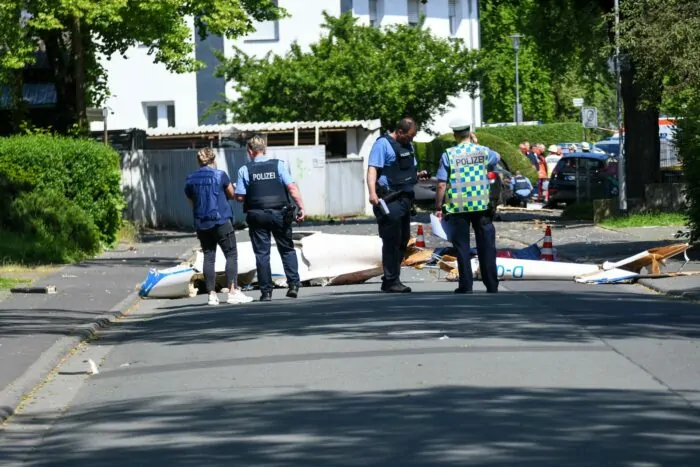 Das Segelflugzeug liegt am Sonntag in viele Teile zerbrochen mitten auf der Straße in einem Wohngebiet in Wetzlar – unweit eines Parks und in der Nähe der Lahn. Der 57 Jahre alte Pilot ist noch an der Absturzstelle ums Leben gekommen.